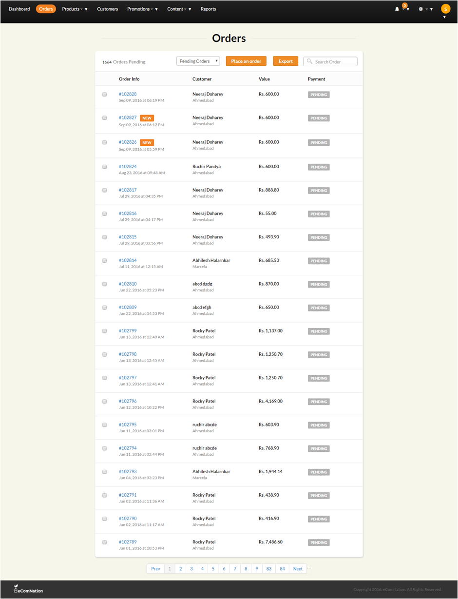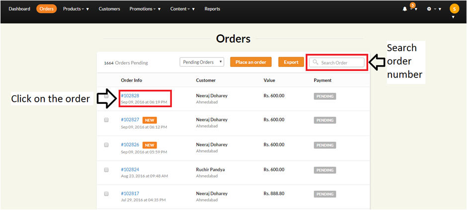 2. Click on the order you want to process or search the order number in the search bar.