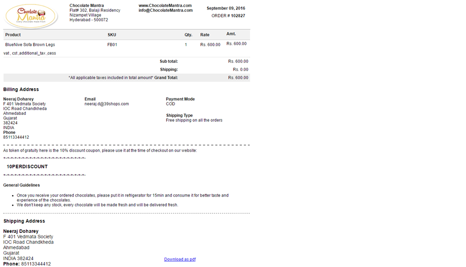 After entering all the data, click on ship this order.