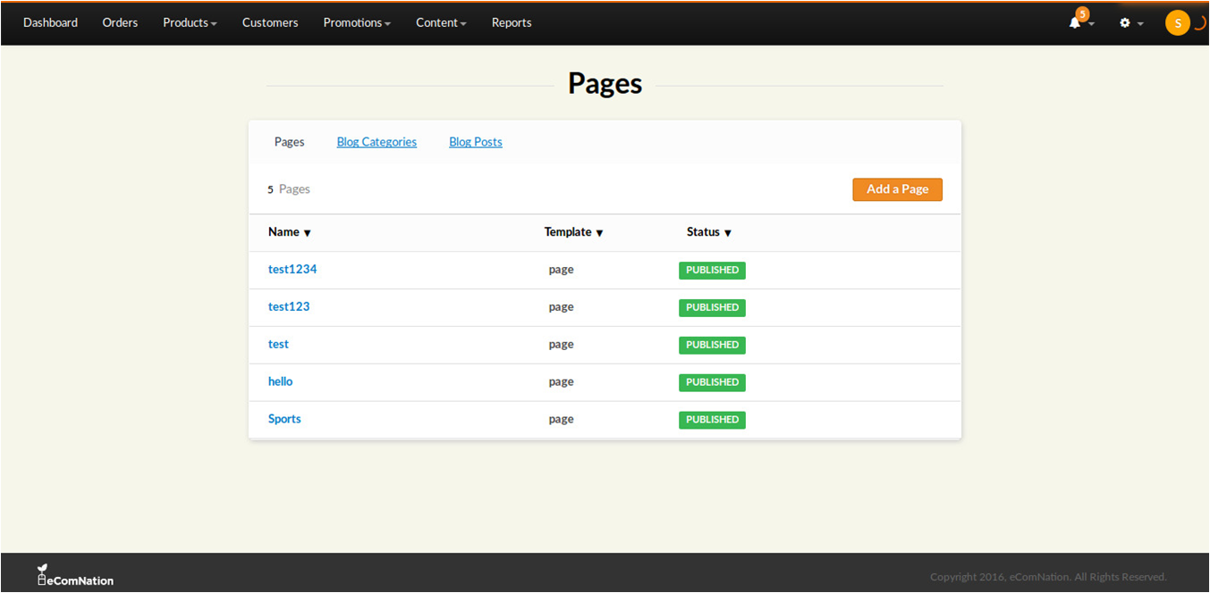 2. Click on Add a Page on the top right hand corner.