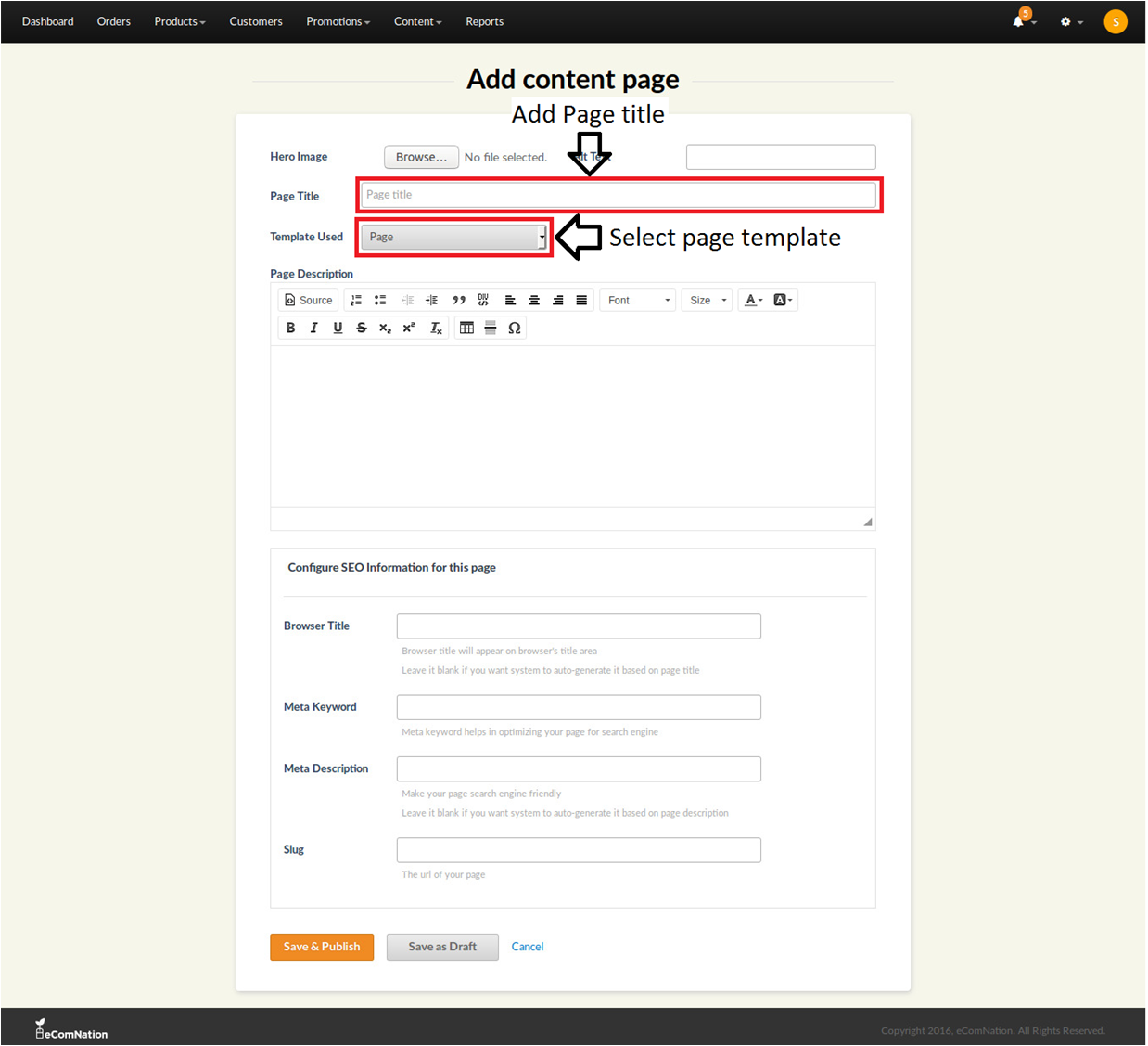 3. Enter the page title and select the page template from the drop down list.