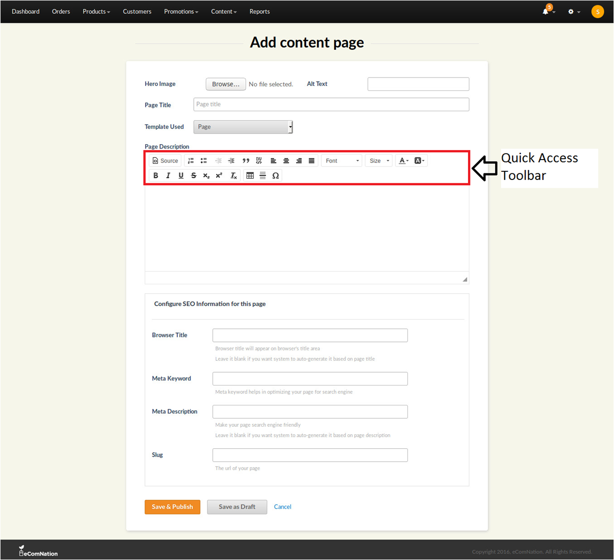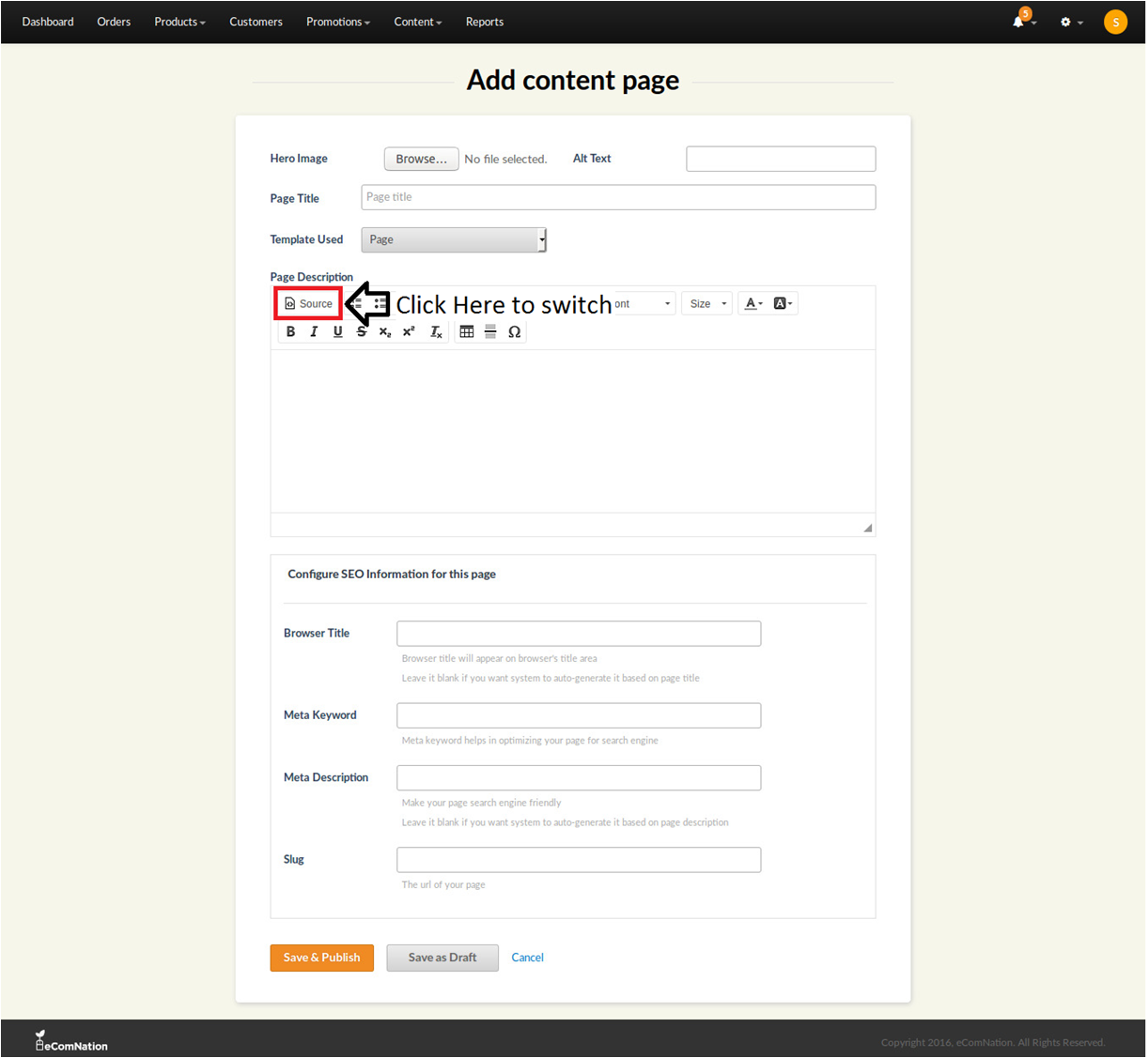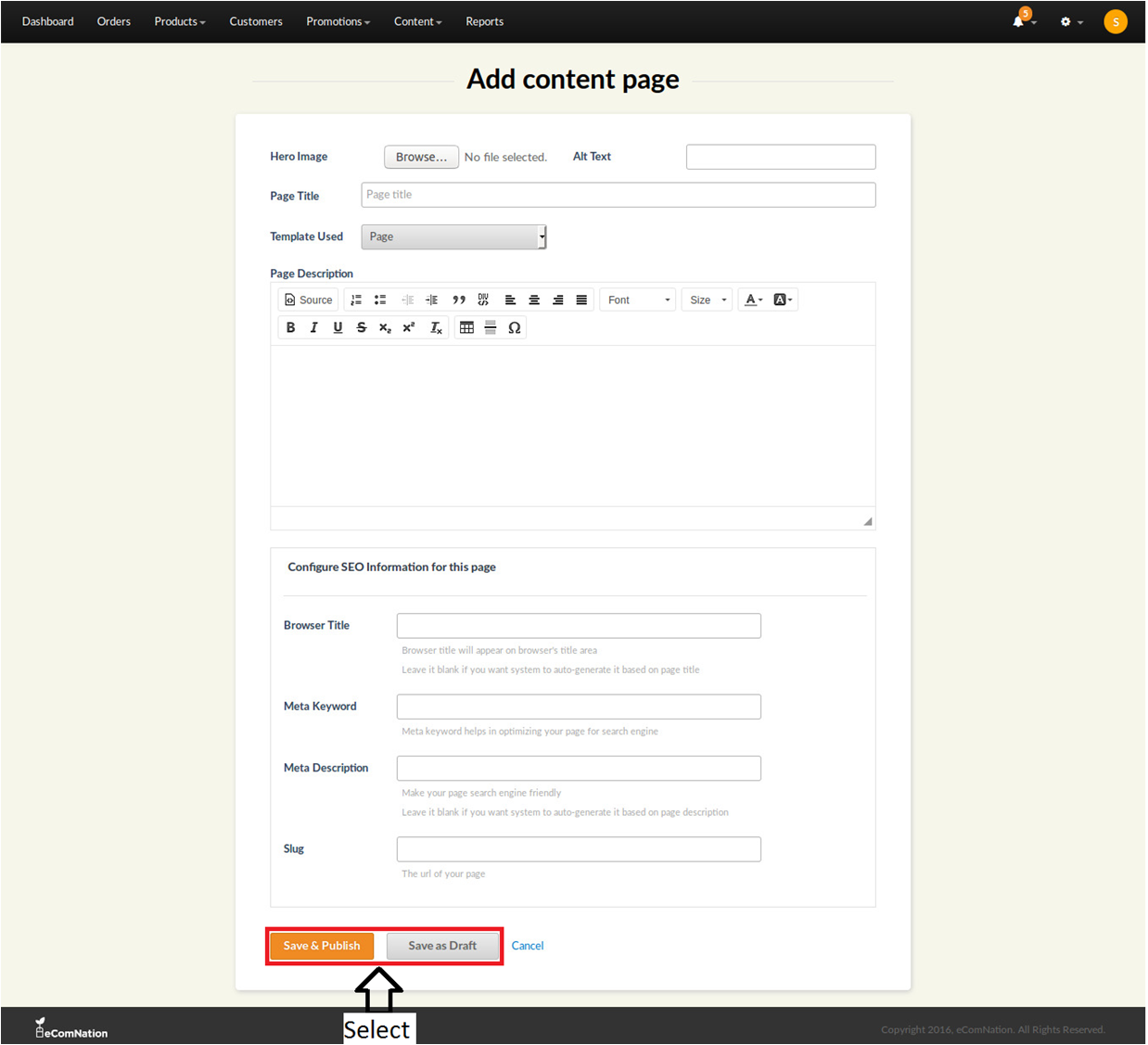 7. You can either Save and publish the page or Save it as a draft.